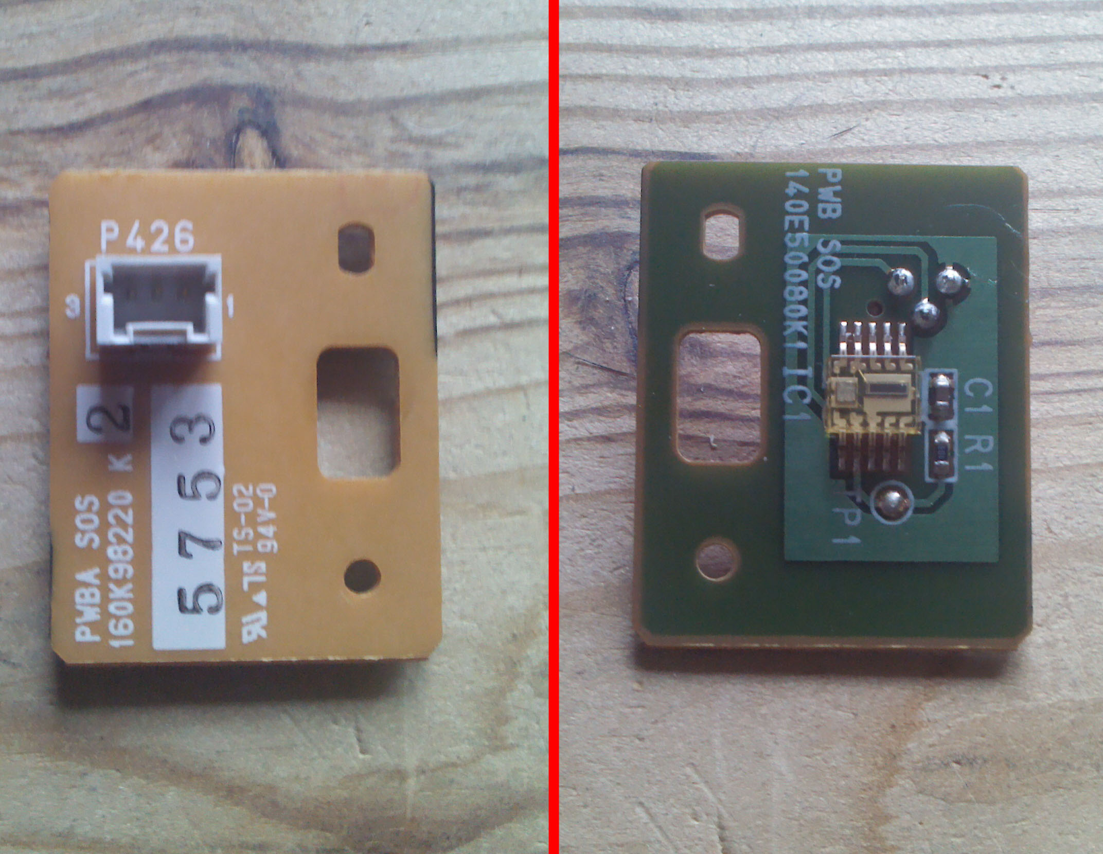 Ich würde darauf tippen, dass das so etwas wie eine IR-LED und ein Photo-Transitor in einem Gehäuse sind. Das könnte dem Erkennen von Papier an einer bestimmten Position dienen und somit dem Drucker mitteilen, das sich z.B. das Papier jetzt da befindet, wo er anfangen darf zu drucken. Könnte aber auch etwas anderes sein. Gruß Oliver
