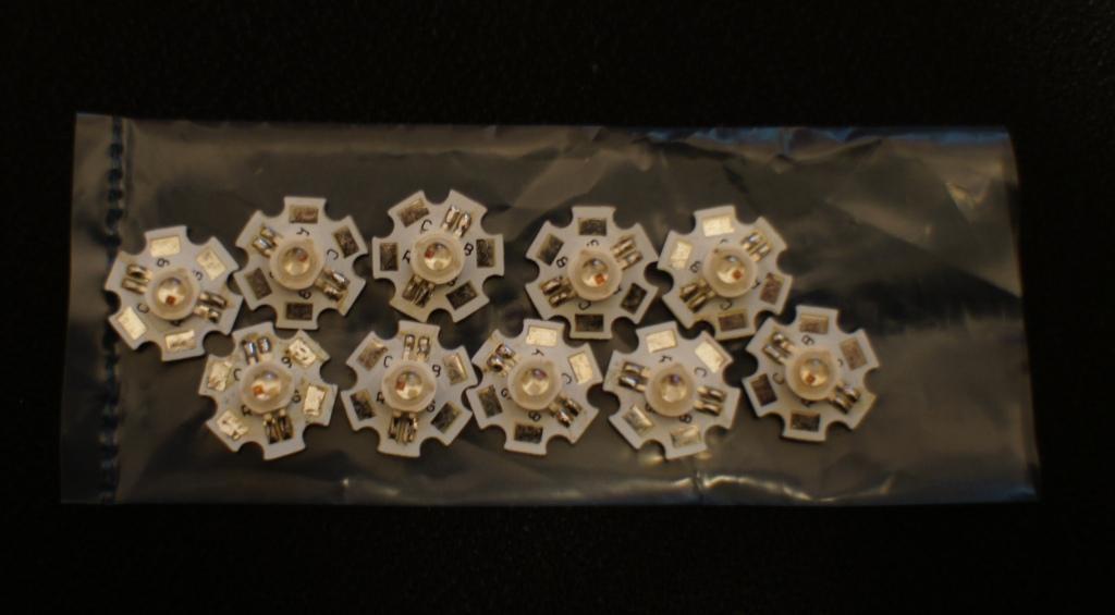 Hi wegen Fehlkauf (diese LEDs haben eine gemeinsame Anode) 10x 3W RGB LEDs aus China abzugeben insgesamt 12€ + 0,90€ Brief Angaben laut Händler: Color: Red, Green, Blue. Viewing Angle: 120 degree. Wavelength: R:620-630nm G:515-525nm B:460-470nm. Voltage(Vf): R:2.0-2.5V G:3.2-3.6V B:3.2-3.86. Luminous intensity: R:30-35lm G:40-45lm B:15-20lm. Current: each 350mA. Eine davon wurde zu Testzwecken schon belötet.