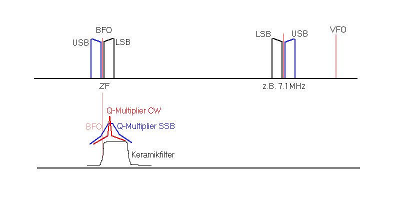 > das BFO-Signal soll über eine ca. 10 bis 15cm lange Leitung > zum Drain des Q-Multiplier-Transistors geführt werden Dann positioniere das Poti für die BFO-Amplitude beim BFO und den Koppelkondensator beim Q-Multiplier.