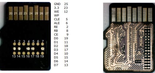 Hallo, ich betreibe eine Firma zur Datenrettung von Flashspeichern, das klappt auch gut, wenn ich den Speicherchip von der Platine holen kann. Bei microSD- Karten ist das jedoch nicht möglich. Die Rohdaten könnten aber über die Kupferverdrahtung der Karte abgegriffen werden. Die Frage ist nur wo! Mit einem Logic Analyzer müsste es möglich sein das rauszufinden. Das Bild zeigt 2 unterschiedlich verdrahtete microSD-Karten. Von der linken Karte sind die notwendigen Pin Outs schon bekannt, von der rechten noch nicht. Wer kann das Problem lösen? Ein ordentliches Honorar ist selbstverständlich!