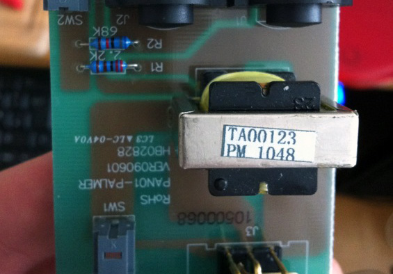 Hallo Leute, ich entwickle seit einiger Zeit einen Fußschalter. In diesen möchte ich gern eine DI box integrieren. meine vorlage und auch mein messutensil ist die Palmer DI box PAN 01. nun kann ich aber nicht die platine davon in mein gehäuse bauen, weil das wär ja nicht legal und so. also entwickel ich meine platine weiter und schau mir die bauteile an, welche palmer benutzt hat, bzw das schaltungsprinzip. man finet ja so ziemlich viele sachen im netz. aber hat man keine beschreibung, hat man keine bezeichnung wirds schwer. angehangen ein paar bilder des bauteils: bild 1: Auf dem ring steht TA00123 und PM 1048 Nebendran auf der Platine steht: RoHS PAN01-Palmer Ver090601 HB02828 LC3 (deltasymbol also das dreieck) LC-04V0A Vielleicht hilft das bei der suche auf bild 2 sieht man, dass die zwei dicken lötpunkte vom ring sind und sekundär drei pins vorhanden sind, primär jedoch nur zwei! (angeschlossen sind sekundär jedoch nur die beiden äußeren!) ich habe gegoogelt ohne ende und habe diesen übertrager gefunden: http://www.mpk-showtechnik.de/websho...DIB-110--.html hier einige angaben von palmer selbst, vielleicht könnt ihr mir ja weiterhelfen, das wäre super![TABLE="class: width100Percent"] Ausgangsimpedanz: 600 Ohm Frequenzgang: 10 - 40000 Hz Transformatorsymmetriert: Ja Übersetzungsverhältnis (Ratio): 10 : 1 p.s. vielleicht kann mir wer noch sagen wir man den auf bild 1 sichtbaren schaltertyp nennt