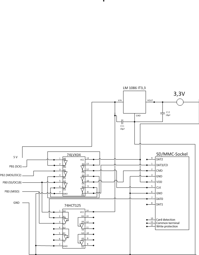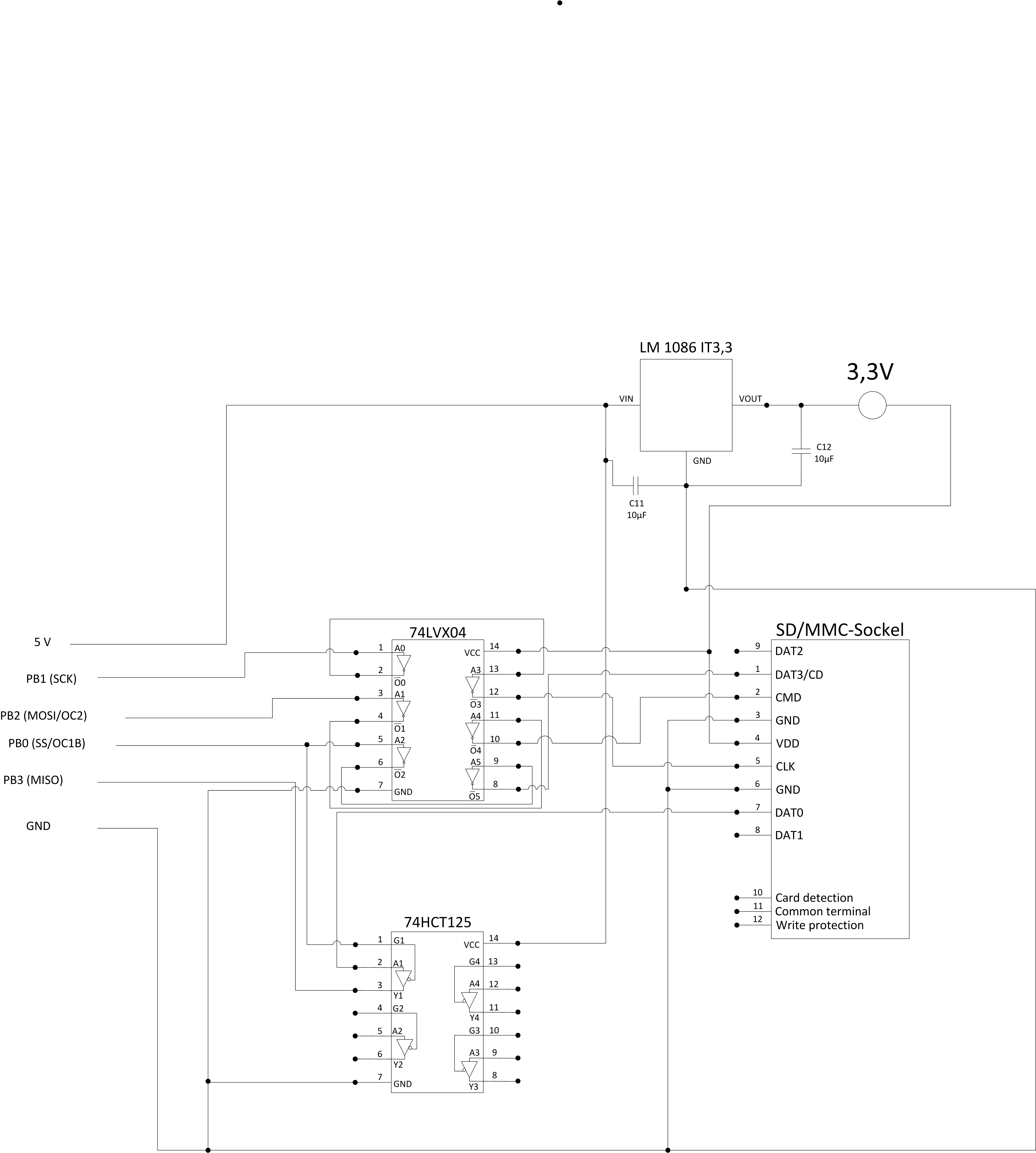 Hi, ich beabsichtige auf einem Atmega 2560 (-> ist gerade verfügbar) die auf http://www.holger-klabunde.de beschriebene SD/MMC-Karten lösung zu testen. Leider ist es mir derzeit nicht gelungen mit einem Minimalbeispiel die MMC-Karte zu beschreiben. Quelltext: #include <avr/io.h> #include <stdlib.h> #include <string.h> #include "dos.h" #include "fat.h" #include "dosdefs.h" #include "mmc_spi.h" #include "dir.h" #include "find_x.h" int main(){ int test=1,written; DDRC=0xff; PORTC=0xff; MMC_IO_Init(); do{ PORTC=0x00; }while(GetDriveInformation()!=F_OK); Fopen("SDtest.xls",'a'); PORTC=0xff; written=Fwrite(test,1); Fclose(); (Hab an Port C LEDs damit ich feststellen konnte wo es hängt) GetDriveInformation() scheint nicht F_OK zu liefern also findet er die Karte ja nicht. CPU Takt hab ich schon auf 1MHz reduziert und einen SPI-Takt von 7,... KHz In der MMC_SPI.h habe ich den Atmega hinzugefügt, da er die gleiche Belegung wie einige andere(Atmega 128, Atmega 64) hat. Hat jemand eine Idee woran es liegen könnte. Auch für Anleitungen zur Fehlersuche bin ich dankbar.^^ MfG
