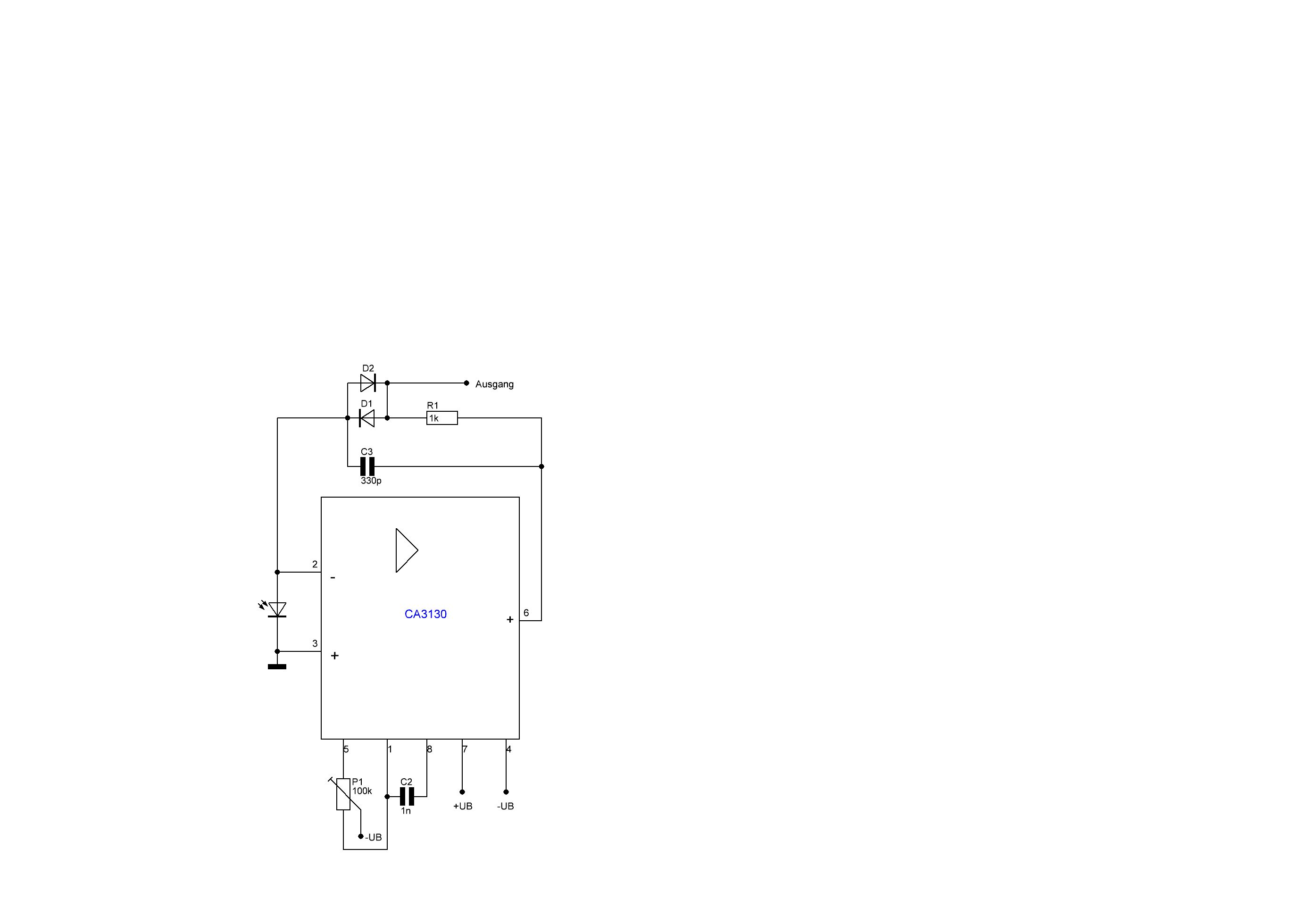so hab den verstärker mal abgezeichnet. betriebsspannung ist +-3v. durch die dioden arbeitet der op als log verstärker. ich denk mal nur näherungsweise.... mfg