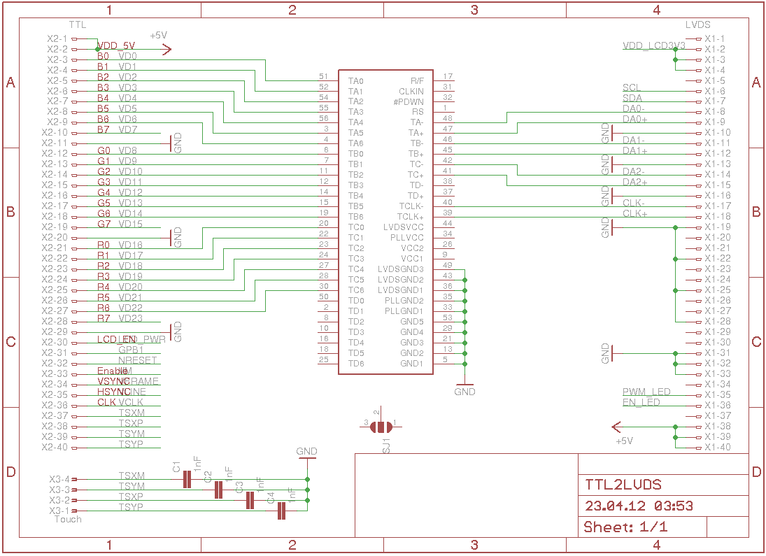 Hi, möchte ein 10,2" Display ans FrendlyARM Micro2440 anschlissen ich hab da etwas Probleme mit bin mir nicht ganz sicher ob ich das richtig verstanden habe. Mit den Datenleitungen vom Micro2440, ich brauch ja nicht alle als Vorlage habe ich die Schaltung von Beitrag "Mini2440 LVDS Display Adapter für größere TFTs" allerdings sind da die Datenleitungen erst ab B2/G2/R2 verbunden, müsste das nocht ehr von B0/G0/R0 anfangen ? mfg tb
