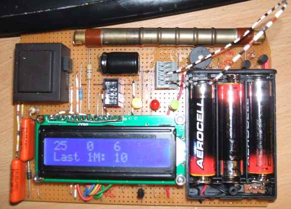 Hallo, ich will mir einen Geigerzähler bauen und die Ergebisse über ein HD44780 ausgeben. Die Hardware klickt aber -> Der Zaehler fuer "GesamtCount" ist auch in der ersten Zeile immer richtig, jedoch springt die untere Zeile (Case 0: Summe über eine Minute) nach richten 5 /5 auf 6 / 10. Immer! Wo liegt mein Fehler? Case 1 bis 5: später Ich benutzt einen 4313 mit AVR Studio5. lcd-routines.h habe ich auf Port D umgelegt. (Vielen Dank fuer dieses File.) Danke feur hilfreiche Tips im Voraus ..... (Die .c Datei ist leider doppelt, da ich das mit den "Auswählen / Anhängen nicht gleich verstanden habe :-(