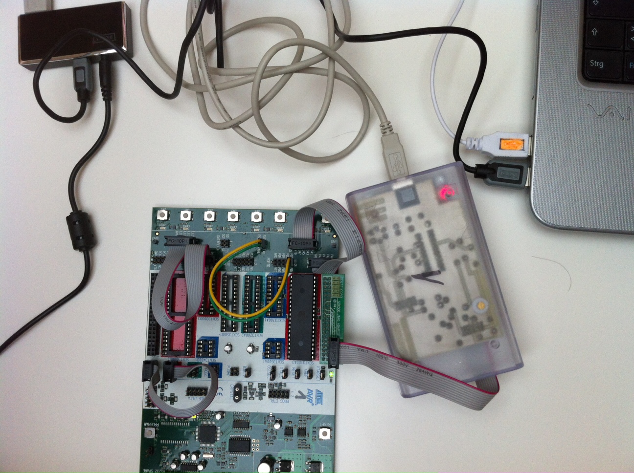 ...ist vielleicht ein wenig her, aaaaber der transparente Kasten ist der DRAGON http://www.mikrocontroller.net/articles/AVR-Dragon Bin auch gerade an der selben Hochschule ;-) , und, tada sitze ebenso ratlos wie der TO vor dem Kabelsalat (meiner hat Nr. 17) und weiß nicht wohin mit dem Dragon-Steckerle. Genug Möglichkeiten gibt es ja... Und ich dachte schon ich hätte die Lösung nach 1x Googlen gefunden, oh man, die Fotos waren echt verlockend ;-)