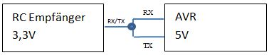Hallo Leute, ich möchte den Telemetrie Rückkanal meines Graupner Empfängers an meine AVR Multiwii (5V) anschließen. Jetzt habe ich das Problem das der Empfänger RX/TX mit 3,3V Logikpegel über nur eine Leitung arbeitet. Siehe angehängte Skizze. So wie ich das verstanden habe, sendet der Empfänger alle 200ms eine Zeichenkette und schaltet dann auf Empfang für das Datenframe um. Wie kann ich mit relativ einfachen Mitteln den Logikpegel anpassen? Eigentlich müsste ich ja nur das Signal von AVR Richtung Empfänger auf eine kleineren Pegel bekommen. Der Umgekehrte Weg sollte ja eigentlich so funktionieren. Da am Empfänger die gleiche Leitung für RX/TX verwendet wird, kommt ein Spannungsteiler wohl nicht in Frage. Grüsse