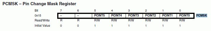 Shit jetzt komme ich doch durcheinander. Wenn es einen PCINT1 Pin gibt, aber keinen dazugehörigen Interrupt - wie nutze ich dann diese PIN Funktion überhaupt? Ich benötige - einen ext. Int - einen PINChange Int - 2 AD Eingänge - 1 PWM Ausgang. Ich dachte das haut genau hin mit dem ATTINY 85... Könnt ihr das nochmal besrätigen bzw. verneinen? Danke.