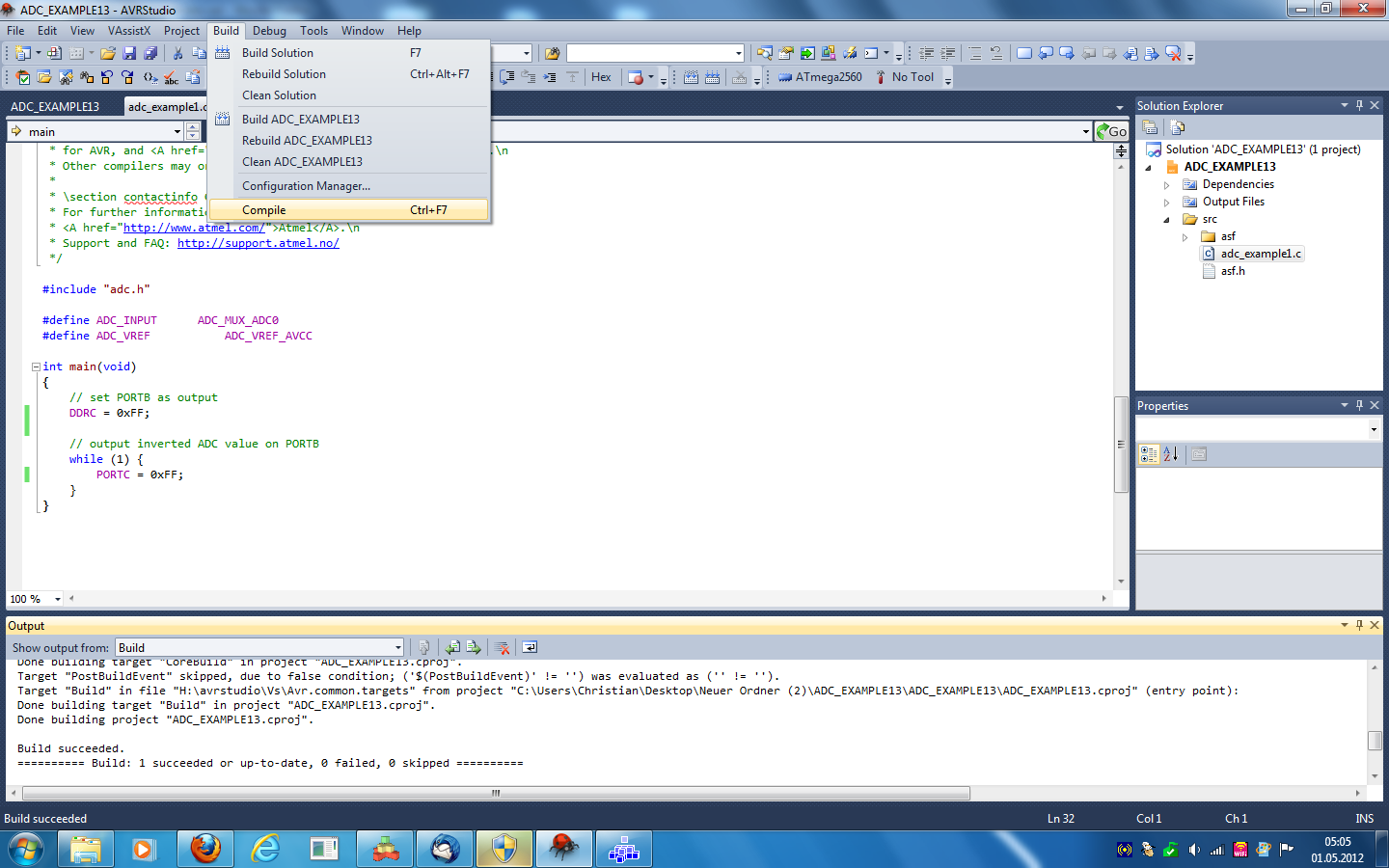 Guten Tag, ich habe mir von myAvr das Einsteigerset mit dem ATMEGA2560 gekauft. In der Software AVRStutio finde ich unter dem Menüpunkt Projects-> New nicht dieses Set. Wie kann ein neues Projekt erstellt werden? Zur Hilfe habe ich ein Beispielprojekt geöffnet, die für den ATMEGA2560 vorzufinden sind. Dieses wurde dann umgeändert um meinem ersten Projekt zu entsprechen. Die Screenshots dazu sind im Anhang zu finden. Zum Brennen habe ich eine Software verwendet (s Anhang) die im Einsteigerset mit dabei war. Jedoch ist nach der Auswahl im "Compile" AVR Stutio in dem Ordner nur eine leere EEP Datei und so brenne ich die HEX wie auf den Bildern erkennbar. Jedoch läut die Software nicht. Welche Schritte sind zu verbessern um die Software zum laufen zu bringen? Vielen Dank! Schöne Grüße, jo