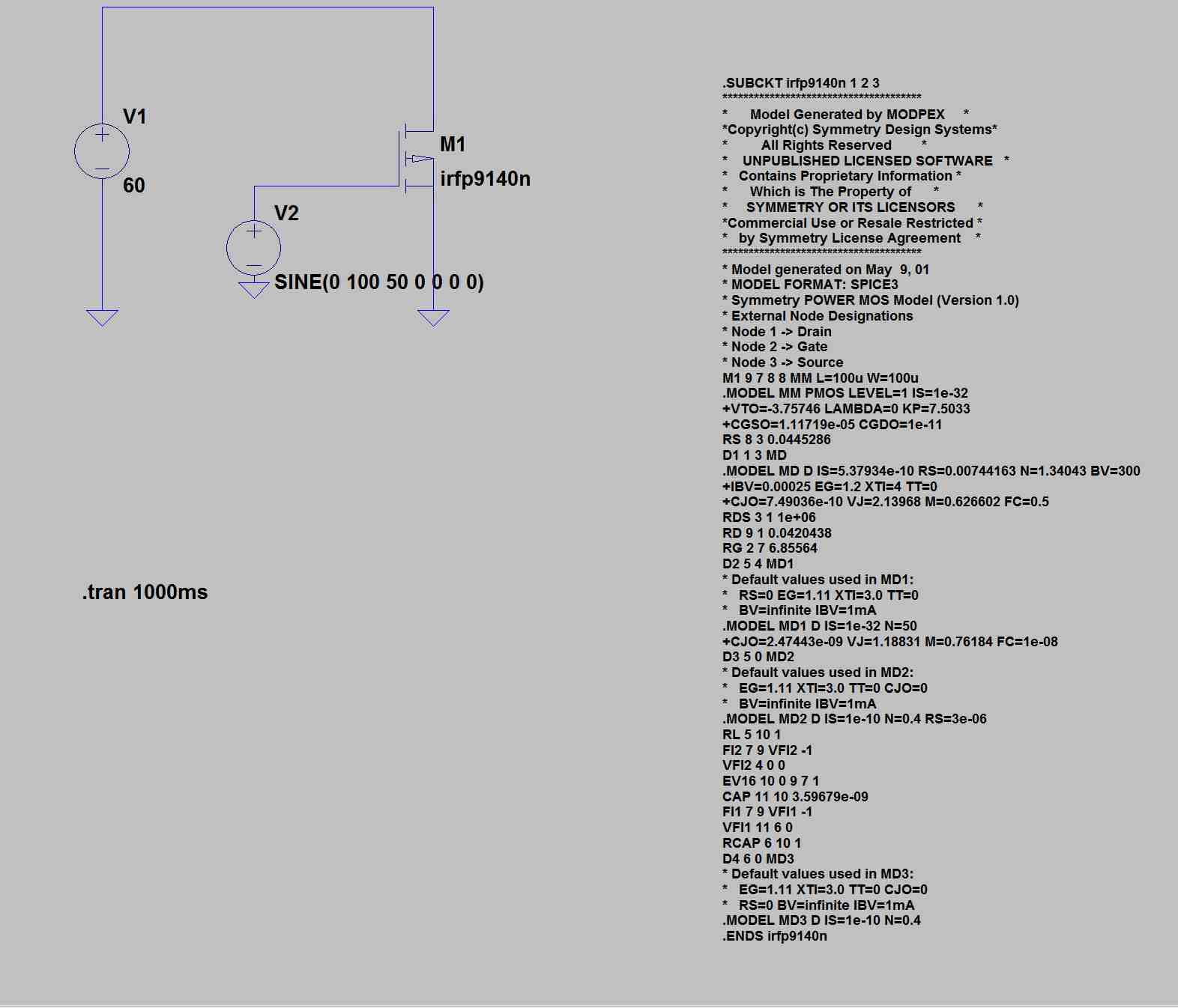 Ich habe in LTspice IV mit einer Spice-Drivective den Mosfet irfp9140n