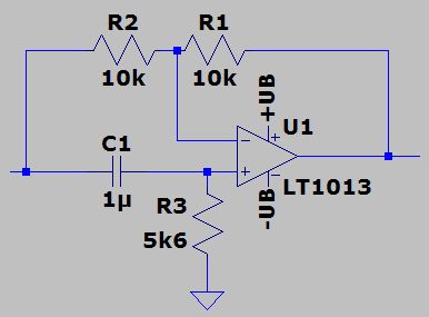 Moin, ich suche eine Hochpassfilter das den Gleichspannungwert beibehält. Eingangssignal ist ein Burst mit überlagerten niederfrequenten Störungen. Höhe der Eingangsspannung +3V, siehe Anhang. Was im Prinzip funktionieren würde, wäre ein Tiefpassfilter und Allpassfilter und beide Ausgangssignale zu subtrahieren. Dazu benötige ich aber ein nicht invertierendes Allpassfilter, da ich nur +3,3V und -1,5V Betriebsspannung zur Verfügung steht. Grüße Krangel