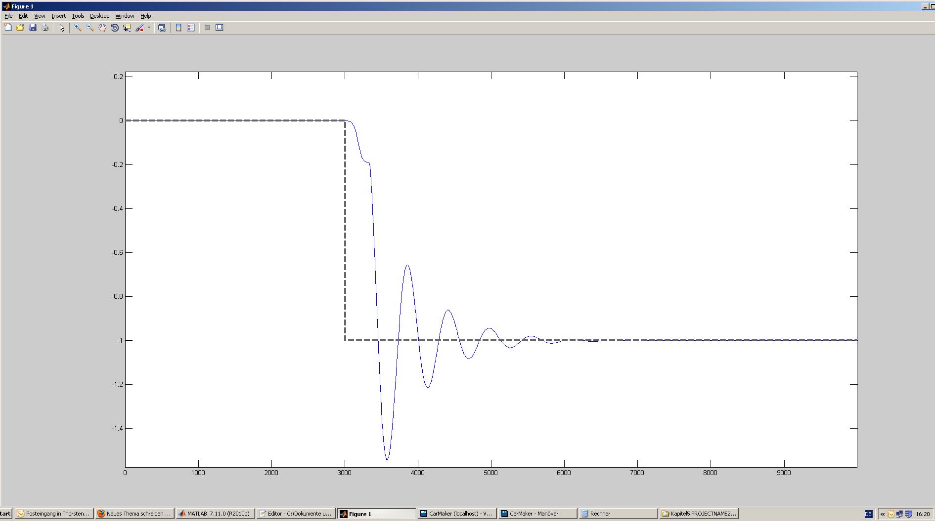 Hallo, ich bin neu in diesem Forum und nicht ganz sicher, ob das Thema an der richtigen Stelle ist. Ich hab einen simulierten Beschleunigungsregler, an dem ich einen Einheitssprung durchgeführte und plotete. Das Übertragungsverhalten dürfte einem PT2 Glied sehr nahe kommen. Gibt es eine Möglichkeit, die Koeffizienten mit Matlab zu berechen, wenn ja wie? Die Übertragungsfunktion ist G(s)= K/(T1*s²+T2*s+1). Das ganze soll nur einer Abschätzung dienen und muss daher nicht 100%tig genau sein. Hoffe bald von euch zu hören, viele Grüße Thorsten