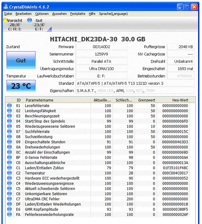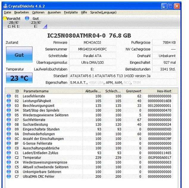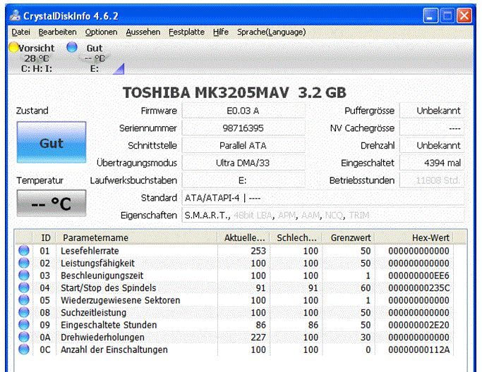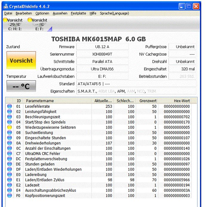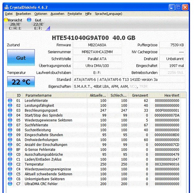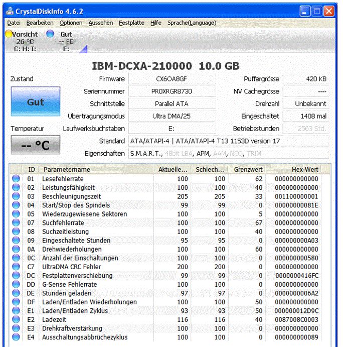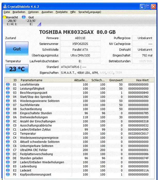 Habe noch einige 2,5" PATA Festpatten von 3GByte bis 80 GByte. Die Platten waren alle in Notebooks in Gebrauch und wurden durch neuere ersetzt. Die "Disk_7.gif" ist nicht mehr wirklich brauchbar, sie dient eher als Vergleich.Die technischen Daten sind in den Bildern ersichtlich. Preis je nach Type ca. 5,- Euro. Weiterhin habe ich auch noch den passenden gebrauchten Notebook Speicher: DDR 256 MByte 2x Kingston KTM-TP0028/256 PC2100 DDR 512 MByte 2x Infineon HYS64D64020GBDL-7-B 64x4, 266MHz, CL2, PC2100 DDR2 512 MByte 2x Infineon HYS64T64020HDL-3.7-A 2Rx16,533MHz, PC2-4200S-444-11-A0 4x Hynix HYMP564S64P6-C4 AA 2Rx16 PC2-4200S-444-12 1x Micron MT8HTF6464HDY-53EB3, 2Rx16, PC2-4200S-444-12-A0 DDR2 1 Gbyte 4x Kingston KTL-TP667/1G 667Mhz, PC2-5300, CL5, 1.8V 2x Hynix HYMP112S64CP6-Y5AB 2Rx16, PC2-5300S-555-12 1x Hynix HYMP512S64CP8-Y5AB 2Rx8, PC2-5300S-555-12 1x Samsung M470T2953EZ3-CE6, 2Rx8, PC2-5300S-555-12-E3 1x Nanya NT1GT64U8HB0BN-3C, 2Rx8, 667MHz, PC2-5300S-555-12-F1 Preis je nach Typ ca, 5,- Euro.