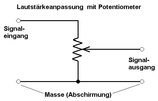 Hallo, mal ne ganz einfaceh Frage: Wenn man ein Audiosignal abschwächen möchte, dann nimmt man ja einen Spannungsteiler, oder? Also soetwas: (Anhang) Was mich jetzt wundert ist, dass doch bei Rechtsanschalg des Potis (oder links, je nachdem) der Signal Aus- oder Eingang kurzgeschlossen wird. Schadet das nicht? LG, A.L.