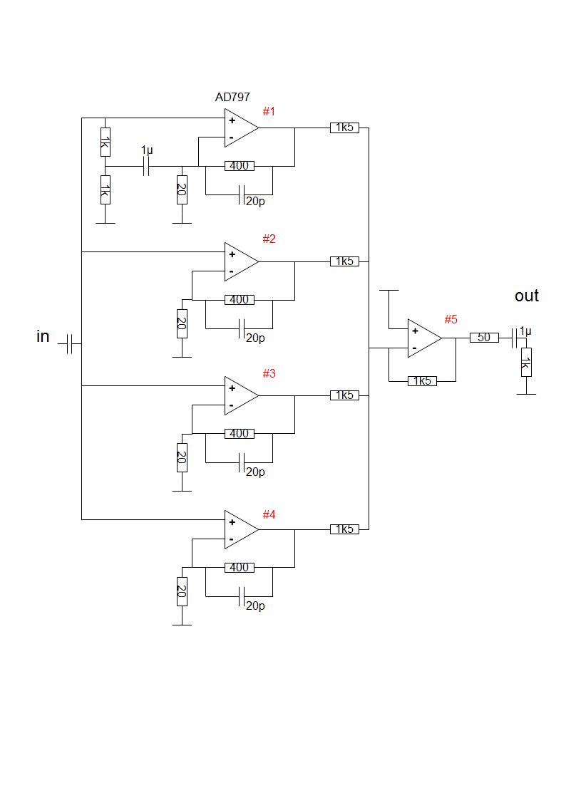 Die Bootstrap Schaltung ist schon mal schlecht für die Stabilität. Das Rauschen kann auch gut daher kommen, das die Signalquelle als Induktivität bei den höheren Frequenzen eine relativ hohe Impedanz hat, so dass man dann das Stromrauschen der OPs sieht - mehr OPs geben dann auch schon mal mehr Rauschen. Für den Frequenzbereich 1 kHz -1 MHz würde ich eher JFETs nehmen, vor allem wenn man bei der Spule ggf. noch die Wahl hat mehr Windungen zu nehmen. Ein guter Start wäre schon mal das hier : http://tf.nist.gov/general/pdf/821.pdf Es geht dabei auch erst mal ohne die Kaskode.