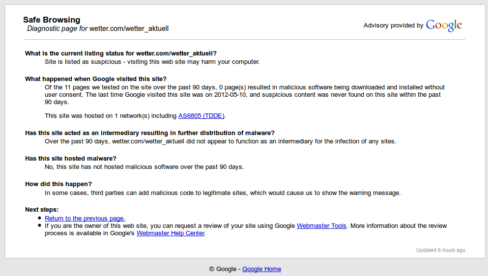 So kurios scheint die Sache nicht zu sein: http://www.heise.de/newsticker/meldung/Virenalarm-auf-Wetter-com-1575304.html Offensichtlich hat ein Werbebanner tatsächlich Schadcode verteilt. Grüße Flo