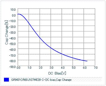 wg.: 100uF, 6.3V Vorsicht mit den Teilen. Wie ja die meisten wissen ist die Kapazitaet der Klasse2-Keramiken nicht Linear. Ich hatte frueher immer gedacht nur die Y5U und Z5U-Keramiken waeren extrem was das angeht, aber die "guten" X7R und X5R-Keramiken sind genauso schlimm. Insbesondere die CeraCaps besonders kleiner Bauform (in Relation zu C*Vnenn) haben katastrophale Kennlinien. Die des oben verlinkten Kondis habe ich mal herausgesucht, siehe Anhang. Natuerlich sind 20% von 100uF immernoch viel und wenn man auf geradewohl die Platine damit zupflastert (Motto : viel hilft viel) kann man damit nix verkehrt machen. Vorsicht ist jedoch geboten, wenn man sich eine bestimmte (Mindest-)Kapazitaet errechnet hat und diese dann auch wirklich haben musz/will.
