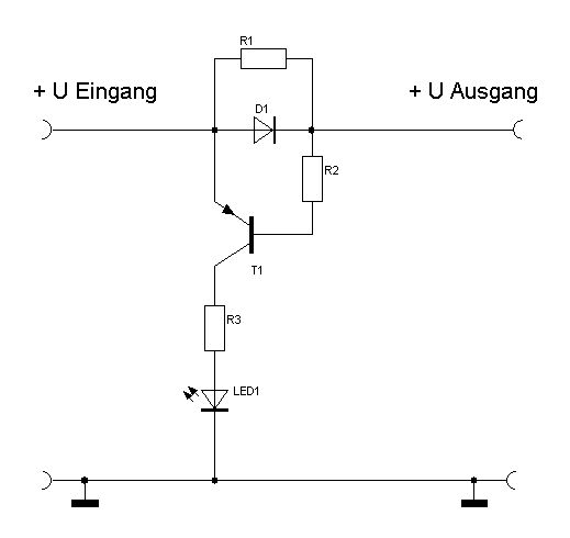 Hat denn das Funkgerät überhaupt eine elektronische Ladeabschaltung ? BEi 2.1Ah Akkus und 100mA Ladestrom scheint das nämlich ein Dauerladegerät zu sein, welches 30 Stunden lang des Akku laden soll, dann soll der Benutzer das Ladegerät selber abstecken (Weckser stellen) zumindest wenn der Akku vorher leer war (sonst eben nur anteilige Zeit). Bei 100mA ist EINE LED in Reihe aber recht kriminell, die meisten LEDs halten einerseits nur 30mA aus, andererseits sperren sie den Strom der in der anderen Richtung fliessne will, also die Häfte des Ladestroms. Ausserdem kostet die LED so 2V. Kläre erst mal: Liefert das Netzteil Gleichspannung oder Wechselspannung (steht drauf, falls es Wechselspannung liefert, ist der Gleichrichter im Funkgerät, eventuell nur ein Einweggleichrichter). Dann ist eine Schaltung wie von Joe gezeichnet besser, weil sie nur 0.7V kostet, wäre aber bei Wechselspannung untauglich. Noch weniger kostet eine Komparatorschaltung, aber auch die funktioniert nur falls das Ladegerät Gleichspannung liefert. + --+-------+-------------+-- Funkgerät + | | LM393 | 220k +--|+\ | | | | >--1k--|<|--+ +---(--|-/ LED | | | 1k +---(-------------+ | | | - --+-------+----1 Ohm----+-- Funkgerät - | | +-----|<|-----+ 1N4001