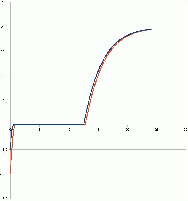 Dirk Braun schrieb: > meiner Überlegung nach müsste es sich um eine e-Funktion mit > Lim->T_aussen handeln analog zur Ladekurve eines Kondensators Nicht, wenn im betrachteten Zeitraum ein Phasenübergang stattfindet.
