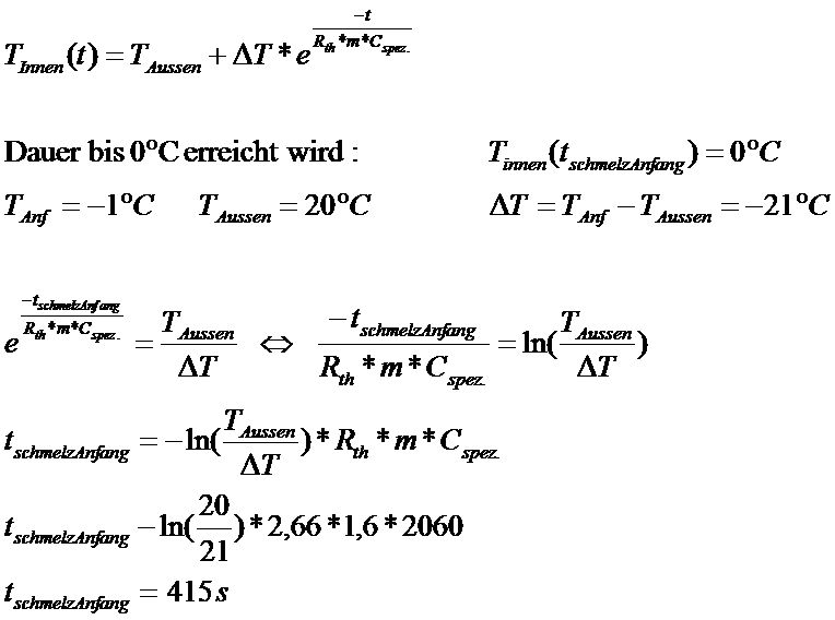 Ja die Luft und anderes wird nicht berücksichtigt dürfte nach Grafik den Widerstand um 50% erhöhen erreicht aber nicht plausible Werte. Mein Hauptproblem und evtl. Fehler ist vieleicht auch die Umstellung zur Zeit: Ich erhalte Zeiten -°1C ---> 0°C von wenigen Minuten Den Rechenweg hab ich mal in der Grafik angehängt