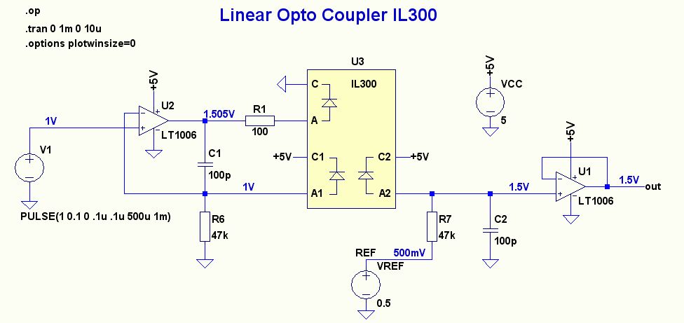 Als grobes Modell für den IL300 könnte man auch erstmal zwei entsprechende Standard-Optokoppler nehmen, bei denen die Sender incl. Vorwiderstand einfach parallel geschaltet sind.