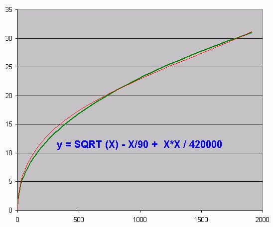 Wurzel2,2(X) = Potenz(X/2,2) = Potenz (0,9090..*X / 2)