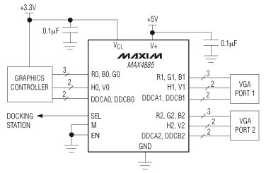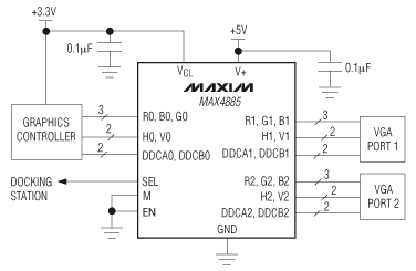 Hallo, ich baue mir momentan einen KVM Switch 2 Monitore auf 4 PC, und bin auf das IC MAX4885 von Maxim gestoßen. Eingentlich perfekt aber: Was ist mit den Masse Anschlüssen für RGB H,V und DDC? Welche Spannung soll am "SEL" Eingang angelegt werden? Wie kann ich das IC auf eine Euro Platine löten? Grüße