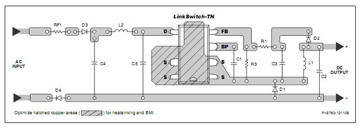 m.E. ist die Ursache für den häufigen Ausfall das (vorsätzliche?) Weglassen der Kühlfläche unter dem IC! Wenn der IC-Hersteller eine Kühl- bzw. Abschirmfläche auf dem Potential der Source-Pins dringend empfiehlt (Datenblatt S. 5), dann sollte sich der Gerätekonstrukteur und dessen Layouter auch dran halten. Denn nur dort kann der Chip Wärme abführen. Platz wäre ja ausreichend vorhanden. By the way: mein Arbeitgeber verbaut auch LNK304GN in Industriesteuerungen. Mit einer 3x größeren Kupferfläche als der IC-Hersteller empfiehlt. Warum wohl? Es gab bisher noch keine Ausfälle bei diesen Geräten, welche auf einen Fehler im SNT zurückzuführen waren . . .