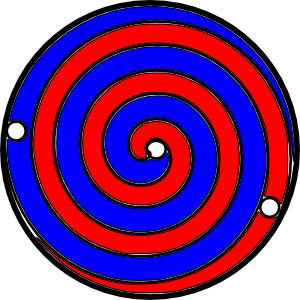 Hallo, ich habe mir mal Gedanken gemacht, wie man eine Brennstoffzelle möglichst preisgünstig bauen könnte. Die PEM-Membran ist für ca. 1 €/W oder weniger erhältlich. Nun zum Aufbau: Die beiden schwarzen spiralförmigen Dinger sind aufgewickelte PEM-Membranen. Dazwischen das Rote ist ein feinmaschiges Kontaktgitter und bildet die Kathode. Durch das Loch in der Mitte oder am Rand, welches zu diesem roten Gitter geht, wird Luft eingelassen und das jeweils andere Loch leitet das Wasser aus. Das Blaue ist das Kontaktgitter auf der Anode, also der Wasserstoffseite. Der Wasserstoff kommt in das zugehörige Loch rein. Zur Kontaktierung werden die Kontaktgitter unten bzw. oben aus dem Wickel etwas überstehend gewickelt und dort verlötet mit den Kabeln. Damit dort kein Wasserstoff austritt, werden die Stirnseiten des Wickels in Kunstharz getaucht und schließlich das ganze Ding wie bei einer Batteriezelle in ein Stahlgehäuse gepresst. Ob das was wird? Was ist da noch zu beachten, insbesondere hinsichtlich chemischer Beständigkeit?