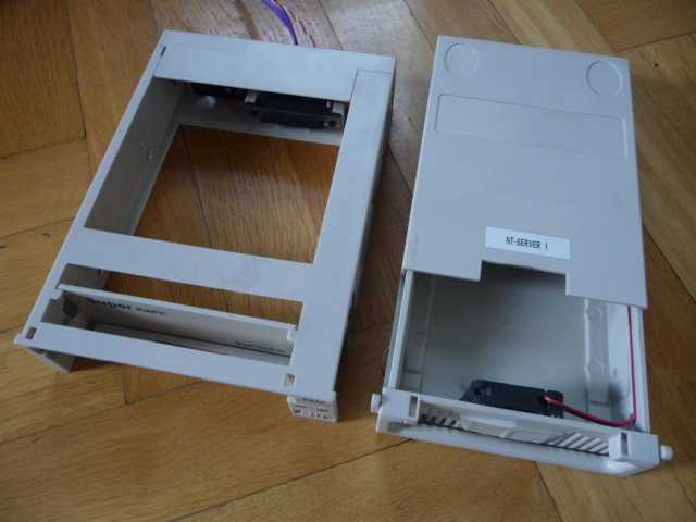 Ich verschenke 4 Stück Wechselrahmen für 3,5" SATA Festplatten. Die Rahmen sind aus Kunststoff und haben 40 mm Lüfter für gute Kühlung. Sind hier ca. 2,5-3 Jahre in einem meiner Server gelaufen und werden wegen Wechsel auf 2,5" Platten ausgesondert. SATA-Kabel ca. 90 cm ist fest verbaut, ebenso LED-Kabel ca. 60 cm. Stromanschluss ist der übliche 4-pol. HD-Molex, nicht SATA. Flache Montageschrauben für die HD sind dabei. Ich versende die Rahmen paarweise (also 2 oder 4), bitte nur per PM: wer zuerst kommt ...
