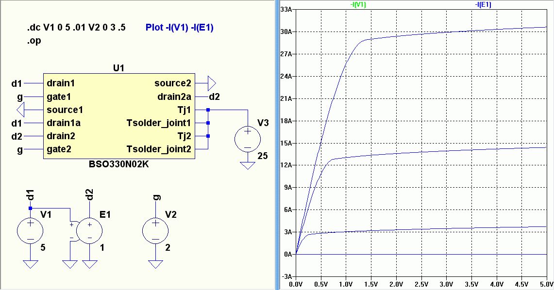 Ich denke das Problem ist, dass Ls, Lg, und Ld per "default" auf 0 sind. Setze die auf 1n. dVth1=0 dVth2=0 dRdson1=0 dRdson2=0 dgfs1=0 dgfs2=0 dC1=0 dC2=0 Zthtype=0 Ls=1n Ld=1n Lg=1n Allerdings kann es durchaus sein, dass diese Gleichungsbasierten Modelle trotz dieser Maßnahme in anderen Schaltungen wieder Konvergenzprobleme verursachen.