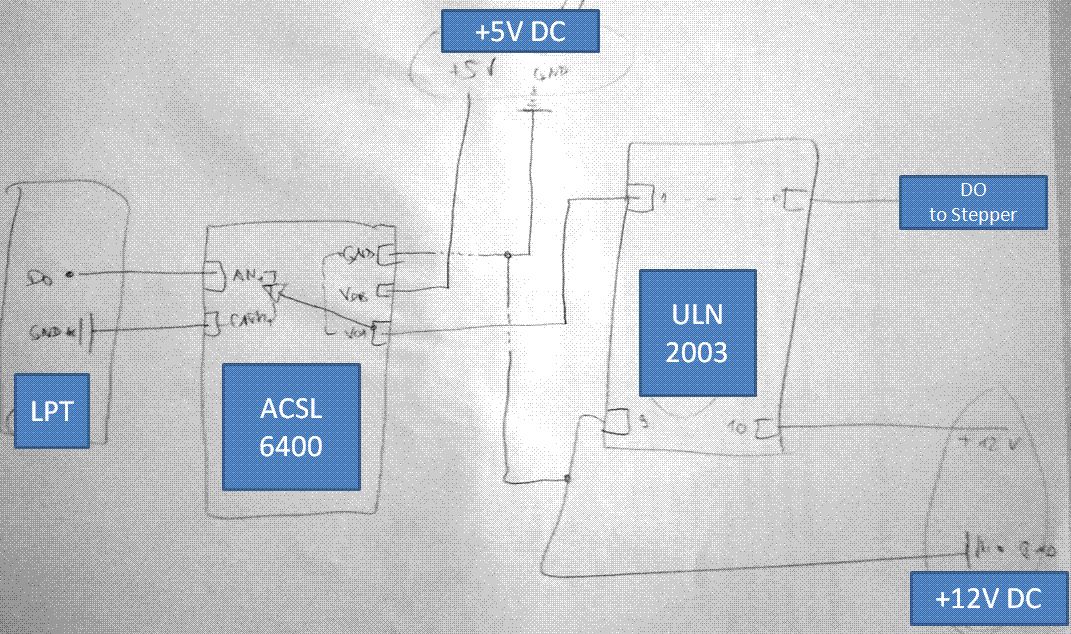 @ Jakub Limanowski (katermurr) >1) Zieht ein Steppermotor immer konstant Strom? Ja. > Die ich habe, sind mit >0.4 A gelistet, dafür würden also die ULNs knapp ausreichen (?) Ja. >2) Was meinst du mit "Puffer" am Parallelport - Eine Zwischenstufe, die aus den nicht immer sonderlich starken, undefinierten Signalen des Parallelports saubere 5V Signale macht. Damit kann man dann die ULNs steuern. > würde hier einfach auch >ein ULN2003 genügen, Nein.