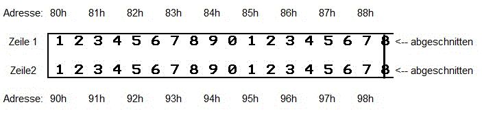 Vielen Dank ! Das wars! Unsere europäischen Zeichen sind half-width, daher will er zwei Bytes haben. Was mich zu meiner nächsten Frage führt... Nehmen wir das Beispiel aus dem Datenblatt: Dort steht in half-width Zeichen " Sitronix ST7920 ". Die Ziffer Sieben steht an einer Halbbyte stelle (0x85, L-Byte). Da der Controller ja zuerst das H und dann das L Byte lesen möchte folgere ich daraus, das es nicht möglich ist NUR die 7 aus ST7920 zu überschreiben. Es müsste ja vorher nochmal das T geschrieben werden um an die 7 zu gelangen. Oder einfach: Ist es nicht möglich, den Cursor ohne Shift o.ä. an eine bestimmte Stelle zu setzen, die dem L-Byte entspricht ? Werde mir auch mal ein paar Libs zum ST7920 besorgen und da ein wenig auf Spurensuche gehen. Klar, wer ein Textdisplay braucht sollte sich ein Textdisplay kaufen, aber gerade die kompatiblität macht dieses GLCD so reizvoll. Grüße