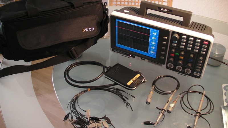 Ich biete ein absolut neuwertiges Speicheroszilloskop OWON MSO 8102T, 2 Kanal - 100/200 MHz - bis 2 GS/s Portable Digital Storage Oscilloscope incl. 16 Kanal Logic Analyzer. Das MSO8102T enthält einen 16 Kanal Logik-Analyser und ein Digital Speicher Oszilloskop in einem Gerät. Die 8 Zoll großen Farb TFT-LCD Bildschirme lassen sich dank der hohen Auflösung von 640*480 Pixeln sher gut ablesen und auch die Menüführung ist durchdacht und auch ohne Anleitung in wenigen Minuten einfach zu handhaben. Das MSO8102T bietet im Oszilloskop Modus eine Bandbreite von 100 MHz bei 1 GS/s (1 Milliarde Abtastungen pro Sekunde) oder 200 MHz bei 2 GS/s (ein Kanal) und im Logik-Analyser Modus eine Bandbreite von bis zu 66 MHz bei 400MS/s auf 16 Kanälen. Die Lieferung erfolgt inklusive zweier Tastköpfe, USB Kabel, Software, Netzkabel, Logik Analyzer und Bedienungsanleitung. Zusätzlich gehört zu dem Gerät eine Service-Transporttasche sowie ein 8000 mAh Li-Polymer Akku mit einer Laufzeit von bis zu 10 Stunden dazu (Aufpreis neu über 100,- €). Das Gerät ist nur wenige Male benutzt worden und befindet sich dementsprechend in einem absoluten technischen und optischen Neuzustand. Es wird in Original-Verpackung, mit Original-Rechnung und Rest-Garantie geliefert. Preisvorstellung liegt bei 590,- € VB inkl. versichertem Versand per DHL.