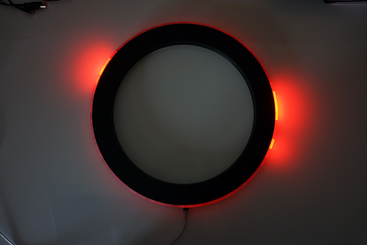 Hallo, wollte euch nur mal meine Uhr vorstellen. Prinzipiell ist sie wie die Equinox Clock von Braam knaapen, nur kleiner (370mm im Durchmesser). Die Farben lassen sich individiuell für Sekunden, Stunden, Minuten und die "Aus-Blöcke" Stufenlos von 0-100% einstellen. Dafür wird ein kleines Konfigprogramm, welches über die USB Schnittstelle via HID Protokoll mit der Uhr kommuniziert verwendet. Die Farben lassen sich Live einstellen, sodass man gleich das Ergebniss sieht. Ein DCF Modul wurde nicht verwendet, aber der eingesetzte Mikrocontroller besitzt die Möglichkeit eines "Abgleichs" des Uhrenquarzes, somit erübrigt sich das nach der Kalibrierung. Ein Stufenloser übergang von der einen Sekunde auf die andere ist ebenfalls realisiert (100 Stufen pro Sekunde). Das Gehäuse ist aus Schwarzem Plexiglas, welche bis auf Deckel und Boden aus Viertelkreise gefräst ist. Die Reflexionsblöcke sind aus satiniertem Plexiglas und wurden ebenfalls gefräst. Die Uhr besitzt zudem noch einen Absolutdrucksensor sowie einen Feuchtesensor, sodass sie als "kleine" Wetterstation nutzbar wäre. Allerdings nur bedingt, je nach Farbwahl einsetzbar. Die Leds sind schliesslich Wärmequellen was diesen Einsatz eher sinnfrei macht. Das war aber ohnehin nie das primäre Ziel.