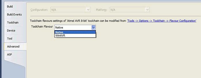 Tach, da ich selbst nach meiner letzten Konvertierung mal wieder vergessen habe, wie das Problem zu lösen ist, schreibe ich mir wahrscheinlich hier selbst ein Memo. Außerdem bin ich nicht der Meinung, daß Netz müßte vor redundanten Infos sicher gemacht werden (und in Datenblättern steht das auch nicht!) Zur Sache: Konvertiere ich AtmelStudio 4 auf 6, klappt das eigentlich bei mir rebungslos und ohne es zu verstehen muß noch Toolchain Flavour auf NATIV gesetzt werden. sonst kramt er sich den alten Pfad wieder raus und verursacht o.g. Problem. Bilder sprechen bessere Worte.... Bestens