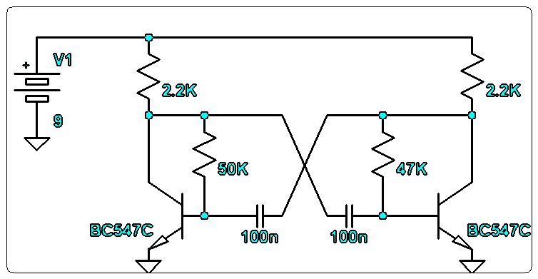 Hallo Thomas, was hältst du von sowas, ist ein einfacher Multivibrator und macht so etwas zwischen 50 und 100Hz, fast Rechteck kommt auch schon raus, da könntest du noch eine kleine Verstärkerschaltung mit einem oder zwei Transistoren anhängen und das würde vielleicht schon für die Eieruhr reichen. Eieruhr, sowas muss einem auch erstmal einfallen... Gruß, Joe