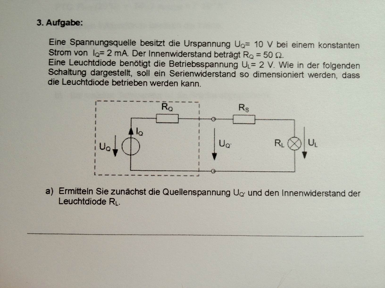 /OT Nun verwundert es wirklich nicht mehr, daß der Nachwuchs LEDs mit Spannung und nicht mit Strom betreiben will. Betriebsspannung/ Innenwiderstand der LED... Das "Modernisieren" des Lernstoffes geht ganz schön in die Hose. /OT Uq -> Ri & I -> Uq´ Bischen Spannung hin und her subtrahieren, Strom hast Du ja, kommst Du auf Rs.