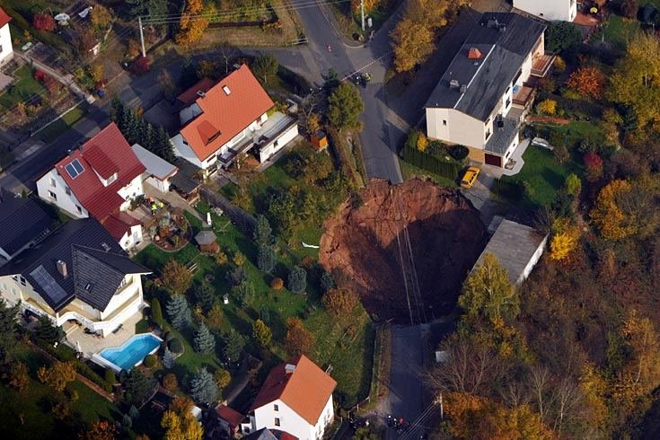 Markus Müller schrieb: > Ich habe dazu auch nicht wirklich eine Idee wie so etwas entstehen kann. Hohlräume, durch fließendes Wasser, oder Bergbau entstanden, die eben irgendwann mal einstürzen. Nichts besonderes.