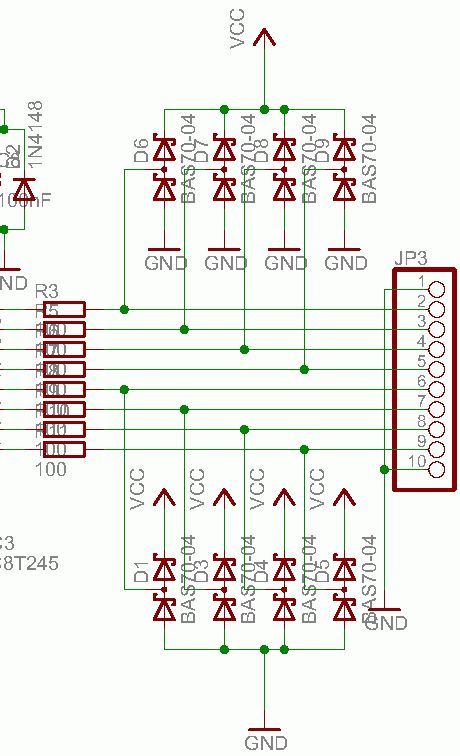 du mußt sowohl den Eingangsstrom begrenzen als auch den Eingang gegen Spannungen größer Vcc und kleiner GND schützen. die SUFU ist Dein Freund. Den CY7C68013A gabs hier reichlich.