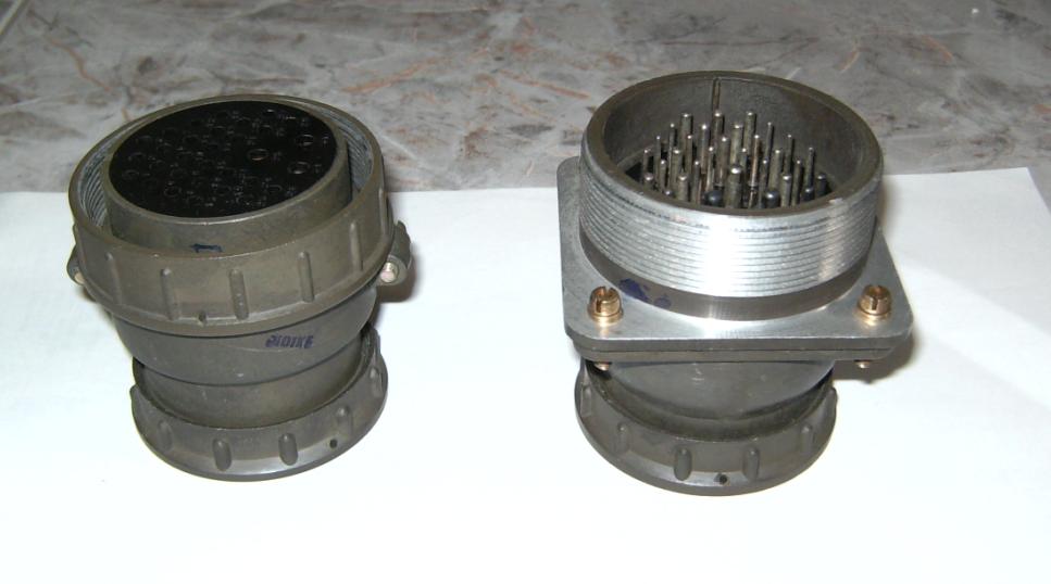 31 poliger Stecker + Kupplung in Ganzmetallausführung, russ. Herkunft, mit folgenden Artikelbezeichnungen Stecker ШРГ55ПК31ЭШ3 Kupplung ШР55П31Э3 3 verschiedene Kontaktgrößen in Gruppen (Stifte/Aufnahme), jeweils mit Schraubkragen für Kabelzugentlastung Abmessungen sind im Durchmesser Kabelausführung innen ca. 4,5 cm , außen 5,6 cm ; Kantenlänge (Quadrat) der Kupplung 6,5 cm ; Durchmesser Schraubkragen 6,3 cm (außen) , komplett zerlegbarer Kabel-/Kontaktschutzkragen (Hinterteil), sowie Stecker- und Kontakteinsatz durch Sprengring. Gewicht zusammen ca. 800 g unbenutzt > neuwertig wenn jemand so etwas o.ä. braucht, in Einzel-Stkn., dann bitte melden, Preisvorstellung pro Teil (Stk. = Stecker oder Kupplung) 7,5 Euro + VK