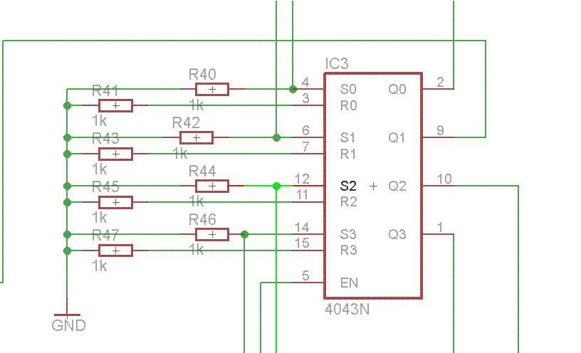 Guten Morgen, Ich habe da ein kleines Problemchen mit diesem Baustein :/ Ich habe den Baustein wie oben beschalten. EN is an 5 V. Gesetzt werden die FF's durch Komparatoren. Die Ausgänge sind auf die Basen von Transistoren geführt mit denen ich dann jeweils ein Relais schalte. Das theoretische geht schon mal nur bei der Ausführung scheiterts.... Obwohl mein Set-Eingang low is, hat mein Q 0,8 V also genug um den Transistor durchzuschalten. Wieso ist das so? Ich habe ehrlich gesagt keine Ahnung. Vielen Dank schon im Vorraus :)