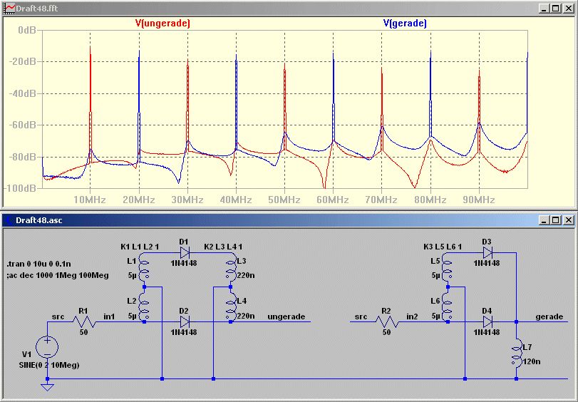 Hallo zusammen. @ Hewlett: Vielleicht hilft dir das weiter: http://www.techlib.com/files/RFDesign2.pdf Der Mensch heisst Charles Wenzel und seine Firma hat auch eine eigene Seite. Da mal bei App Notes schnuppern, es gint bei ihm auch noch andere interessante Sachen. Wenn der Link oben nicht gehen sollte, google mal nach 'Wenzel Diode Tripler' 73 Wilhelm