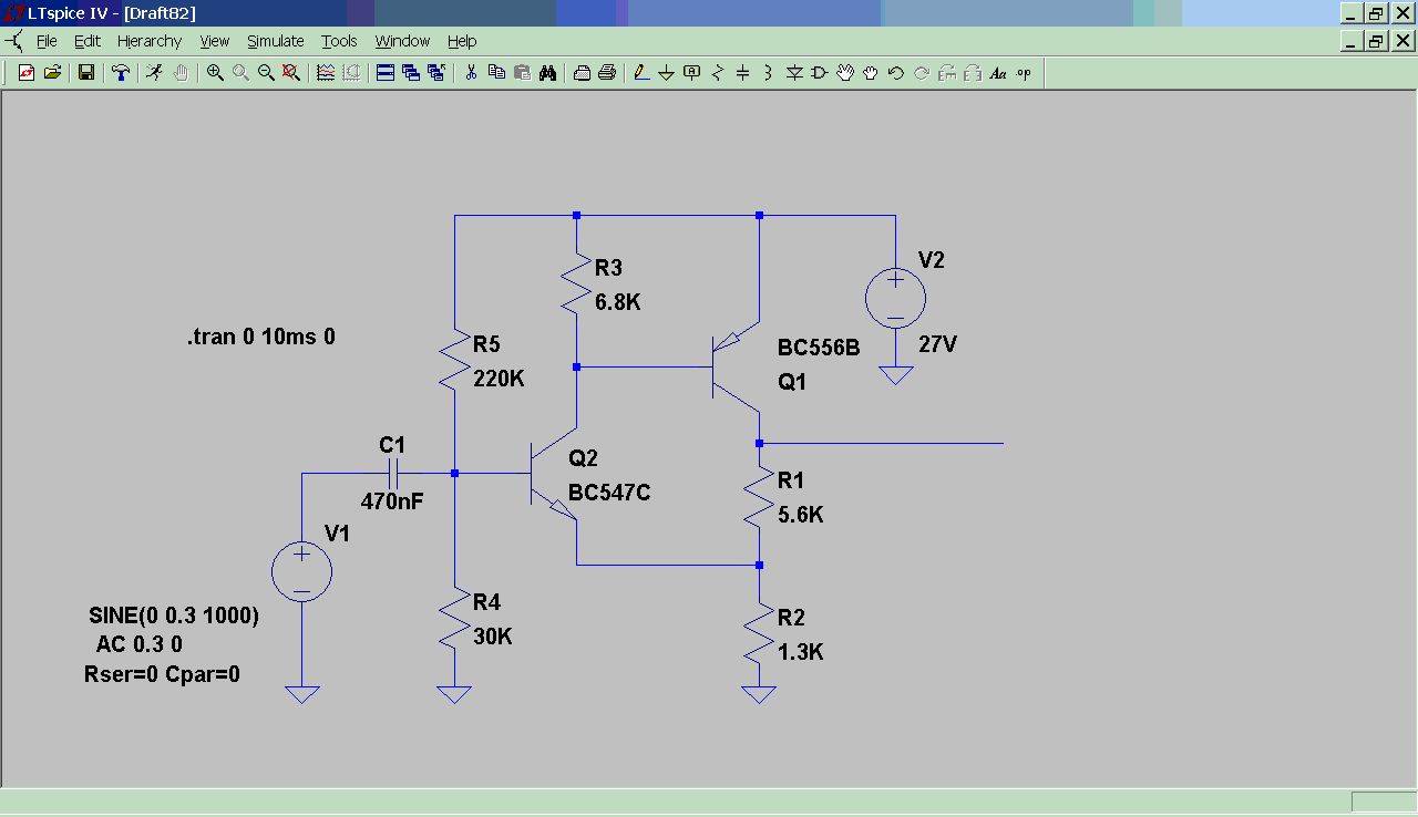 Alex (Gast) schrieb: >Ausgangsspannungs soll dann 1,5-2V sein (Eingangsempfindlichkeit der >Endstufe ist 1,5V RMS). Und was ist die Eingangsspannung? Baue es so auf wie Helmi es zeigte, nur daß Du Q1 und R1 komplett wegläßt, und das Signal am C des Q2 über einen C abnimmst. Das wäre dann die npn-only-Variante. Allerdings etwas schlechter im Klirrfakor, was aber bei mäßiger Verstärkung in Grenzen bleibt. Verstärkung ist dann etwa R3/R2.