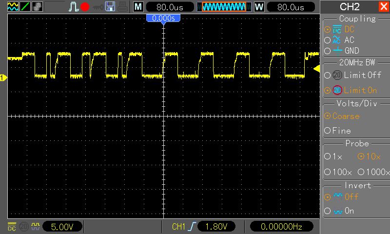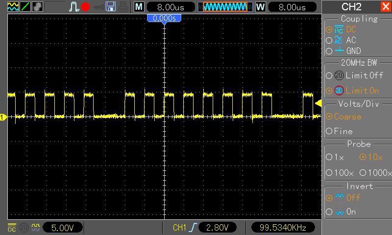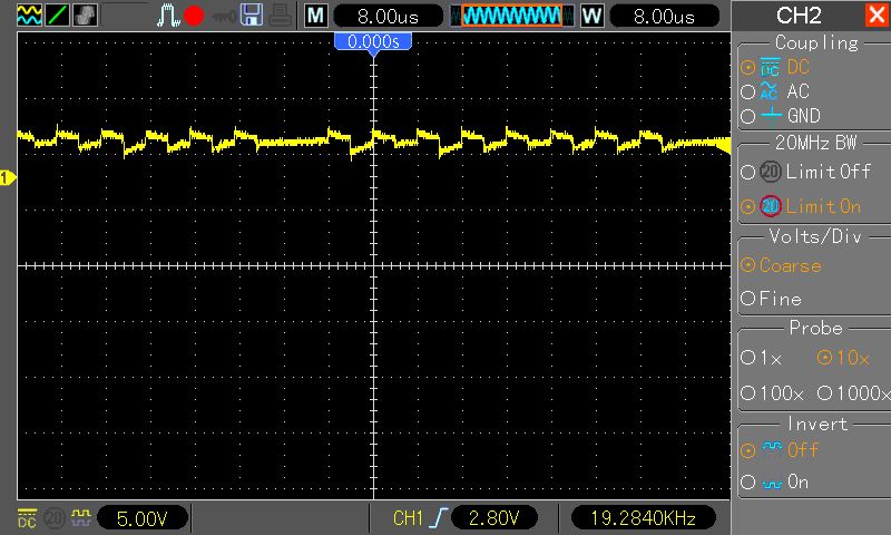 und woher soll das kommen. Hier der Pegel vom MK3 Board. Selbe Verkabelung und selbes Programm. Ja Ich habe den AT90PWM3B richtig programmiert. Ich weis auch der er man andere Pins verwenden muss. Auser man setzt ein spezieles Bit.