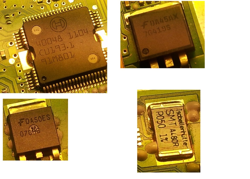 Berny Cern schrieb: > Sind aug einer > Bosch platine verbaut und ich komme seit zwei tagen nicht weiter! das Wäre vielleicht einfacher wenn Du noch sagst was für ein SG. Und was für ein Prozessor verbaut ist. - Isabellenhütte stellt Shunt-widerstände her. (vermutlich 50mOhm) - Das Bosch IC oben links ist wahrscheinlich ein von Bosch selbst hergestelltes ASIC. (Hiquad 64 - Gehäuse). Such Dir eins aus: http://www.semiconductors.bosch.de/media/pdf/informationsbroschre/Bosch_Semi_Sensors_Spring2012.pdf Gruß Anja