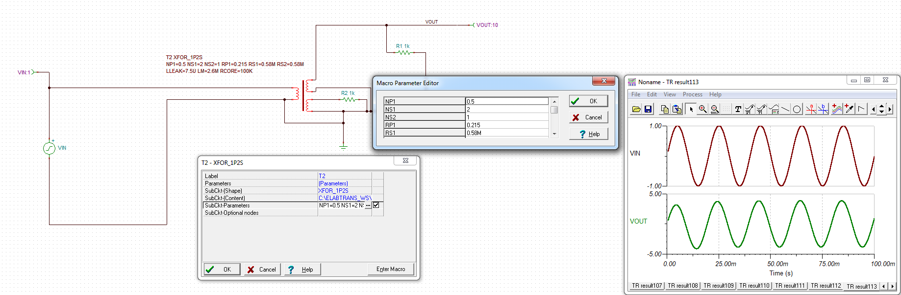 Ich versuch zur Zeit in TINA das Bauteil UCC28950 (Fullbridge Schaltregler) zu simulieren, allerdings komm ich mit dem Transformator nicht ganz zu recht. Ich will eigentlich nur einen Trafo bauen, der auf der Primärseite 3mal mehr Wicklungen hat, als auf der Sekundärseite Um das System in TINA zu verstehen, habe ich die im Anhang befindliche Schaltung in TINA gezeichnet. Der Transformator stammt direkt von der aus dem Plan von TI ab. Scheinbar haben nur die Parameter NP1 und NS1 Einfluss auf die Ausgangsspannung NP1=1, NS1=1, Eingangsspannung 1V = Ausgangsspannung 1V NP1=0.5, NS1=1, Eingangsspannung 1V = Ausgangsspannung 2V NP1=0.5, NS1=2, Eingangsspannung 1V = Ausgangsspannung 4V Ist NP1 das Windungsverhältnis und NS1 villeicht die Induktivität der Primärwicklung? Wieso hat dann aber NS2 keine Auswirkung auf die Ausgangsspannung?, weil es kein NP2 gibt? Viele Grüße Stefan