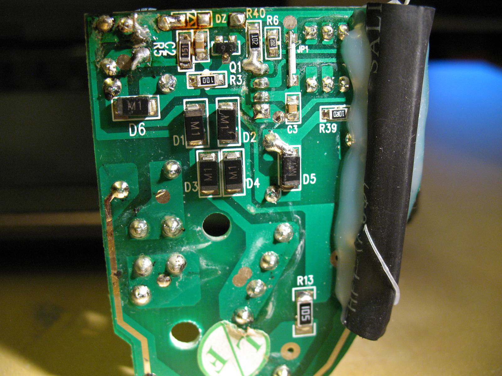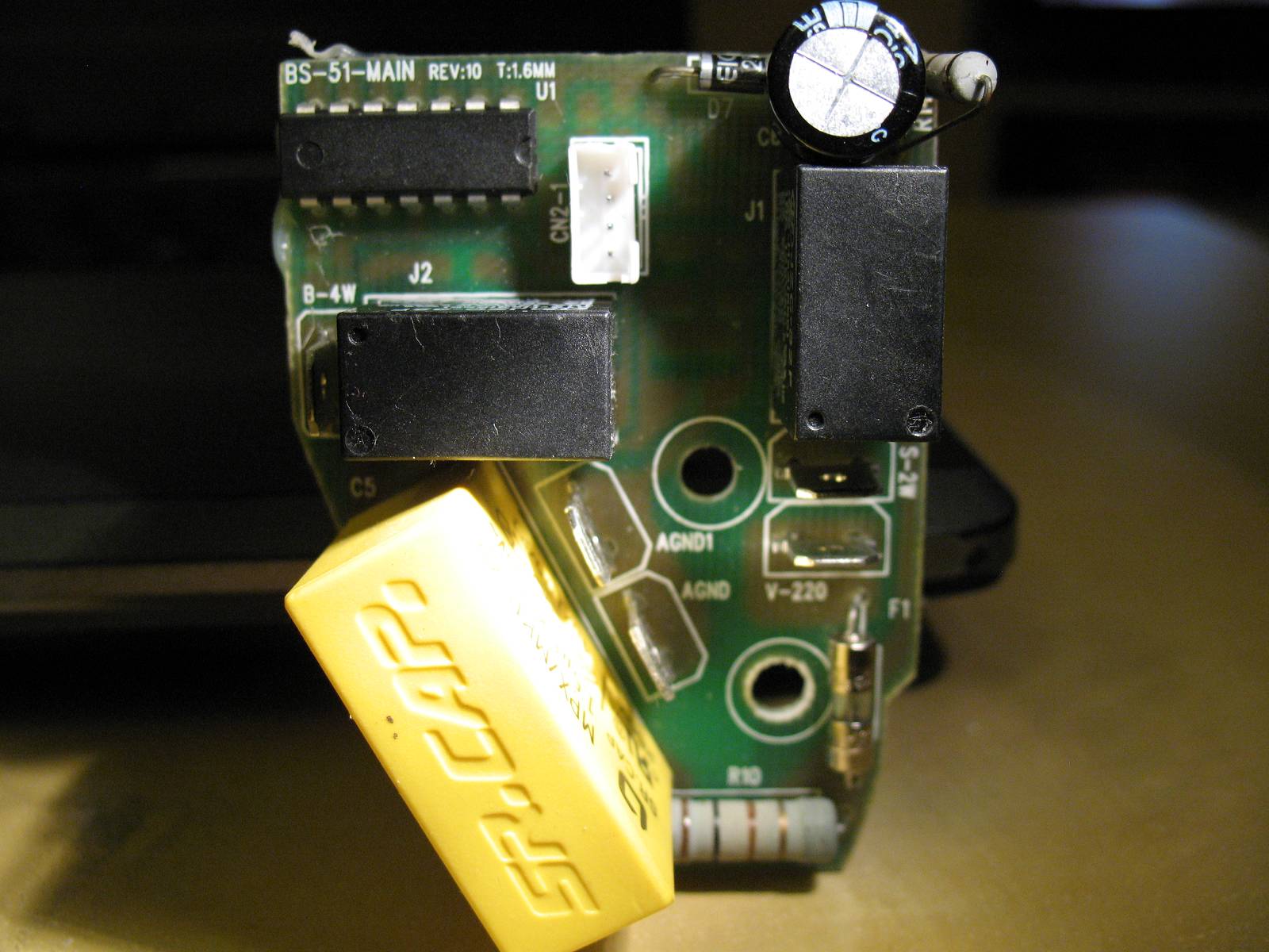 Floh schrieb: >Erstmal solltest du die Schaltung verstehen. Dazu wäre es sinnvoll, >einen Schaltplan davon zu zeichnen. Ich glaube selbst dann würde ich es nicht verstehen :) Da ich in der Materie nicht fit bin, brauche ich Unterstützung. > den würde ich mal ausbauen und außerhalb der Schaltung > durchmessen. Ausgebaut und ebenfalls 500 Ohm gemessen. Ich kann die Farben aber nicht gut erkennen. Würde sagen schwarz, braun, braun, gold? Würde 10 Ohm, 5% Toleranz laut Rechner machen. (Mod: Bild im Anhang von vormals 3,2MB verkleinert. Bitte in solchen Fällen einfach "Beitrag melden" statt ausufernde off-topic Diskussionen über Bildformate.)
