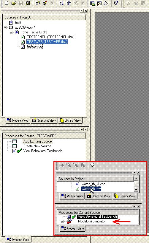 Hallo. Och eschäftige mich geread mit den einem CPLD von XILINX (zumindest mit der software dafür - WebPack). Jetzt hab ich mri die tutorials angeschaut und wollte mal einen test bench nachvollziehen. hab alles so wie beschrieben gemacht und jetzt fehlt leider der eintrag SimModal. Weiss jemand wie ich das machen muss, damit ich mir die simulation anschauen kann ? (Im anhang ein screenshot von mir - das mit dem roten rahmen ist das passende bild aus dem tutorial und der rote pfeil zeigt auf den eintrag der bei mir fehlt) MfG Rolf