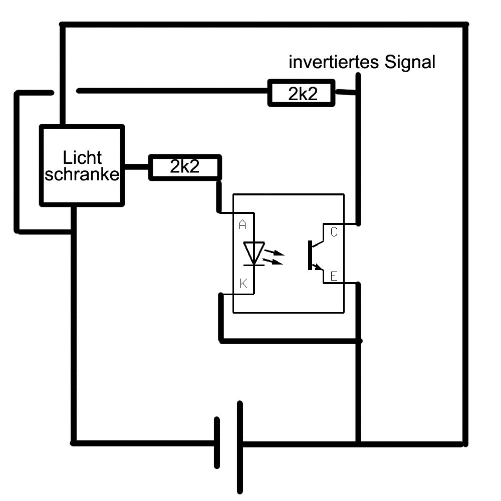 Hallo Optokoppler ist so ok. Die Version mit den Dioden siehe Anlage. Die Dioden entkoppeln die Lichtschranken.